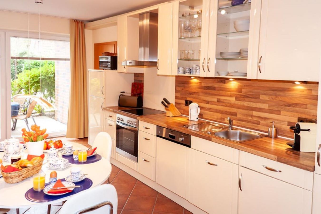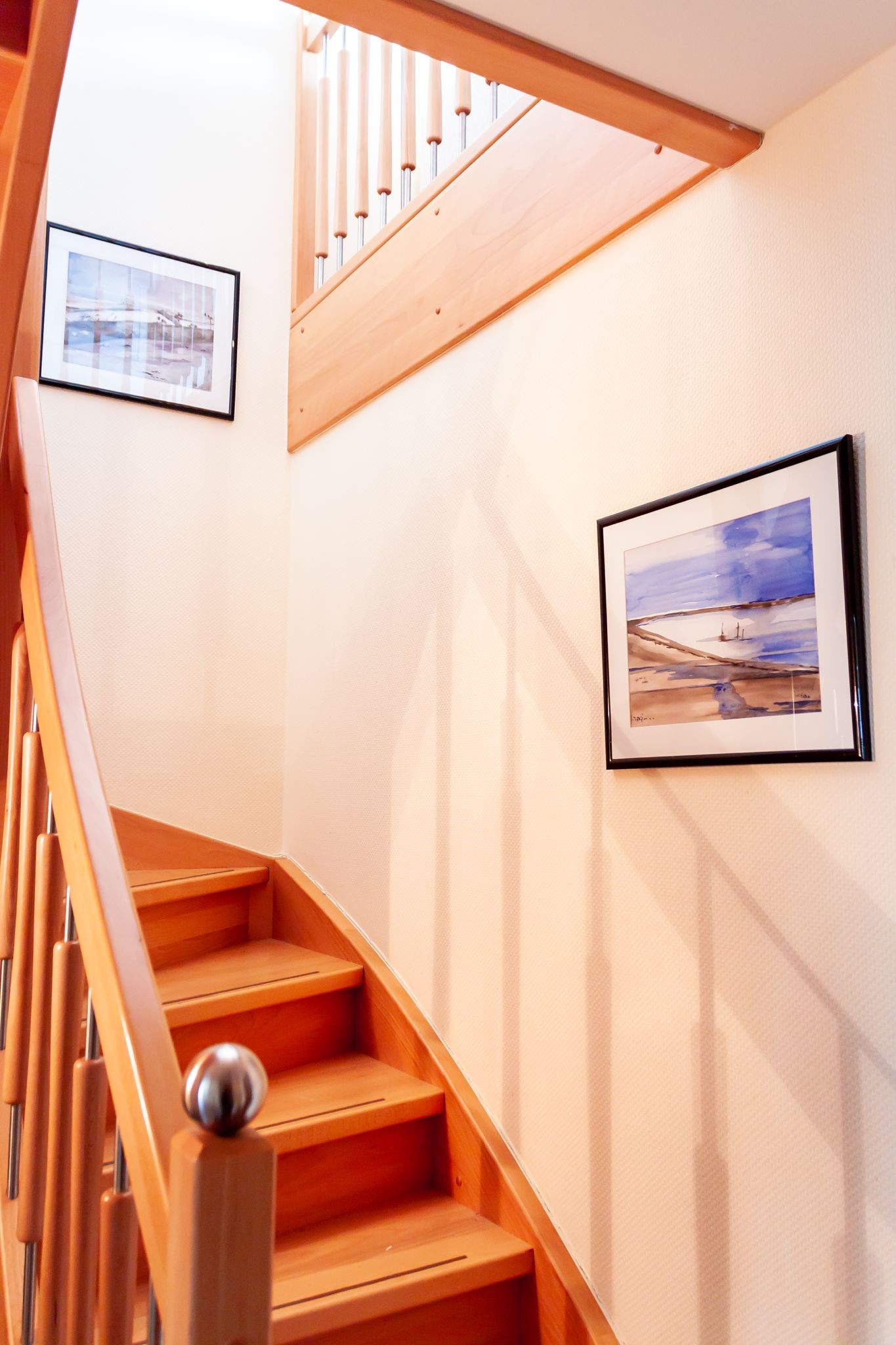 Die sehr gepflegte, komfortable Maisonette Wohnung mit 103 qm erstreckt sich über Erd- u. Obergeschoss, verbunden durch eine Treppe. Die große Wohnküche bietet mit windgeschützter Ost-Terrasse viel Wohnkomfort - ebenso wie das geräumige Tageslichtbad. Beide Schlafzimmer bieten Zugang zur West-Terrasse mit angrenzender Rasenfläche. Im Obergeschoss genießen Sie die traumhafte Seesicht in Richtung Neuwerk aus dem Wohnraum, der mit einer kleinen Einbauküche und einem großen West-Balkon und Schlafcouch ausgestattet ist. Die Wohnung ist u.a. mit bodentiefen Fenstern, elektrischen Rollläden u. Fußbodenheizung ausgestattet. Die wunderschöne Wohnung verfügt außerdem über: Kabelfernsehen, kostenloses WLAN, Smart-TV, WLAN-Radio mit Bluetooth, DVD Player und CD-Kompaktanlage, Küchenzeile mit Backofen, Geschirrspüler, Kühlschrank, Gefrierfach, Herd mit Ceranfeld, Mikrowelle, Filter-Kaffeemaschine, Wasserkocher, Toaster, Mixer u.v.m., 1 Badezimmer mit Dusche/WC, Fön, 1 zusätzliches WC im Obergeschoss, 1 Bollerwagen, 1 PKW Stellplatz. Im Haus gibt es gegen Gebühr eine Waschmaschine und einen Trockner. Auf dem Grundstück befindet sich eine Liegewiese und ein Grillplatz. Mit 4 Personen belegbar. 6 Personen auf Anfrage. Der Dünenweg, der Sie direkt zum Duhner-Strand und dem lebendigen Zentrum von Duhnen führt, wird hier zum Wanderweg. Es gibt also keinen Durchgangsverkehr vor Ihrer Haustür. Zur anderen Seite geht es ab in die Natur Richtung Sahlenburg (unbebaut, mit sehr schönem Fahrradweg). Es sind ca. 6 Gehminuten zum Thalassozentrum „ahoi!“ und ca. 15 Gehminuten zum Zentrum von Duhnen. Das Haus hat einen Fahrstuhl und jede Wohnung hat Kabelanschluss.
