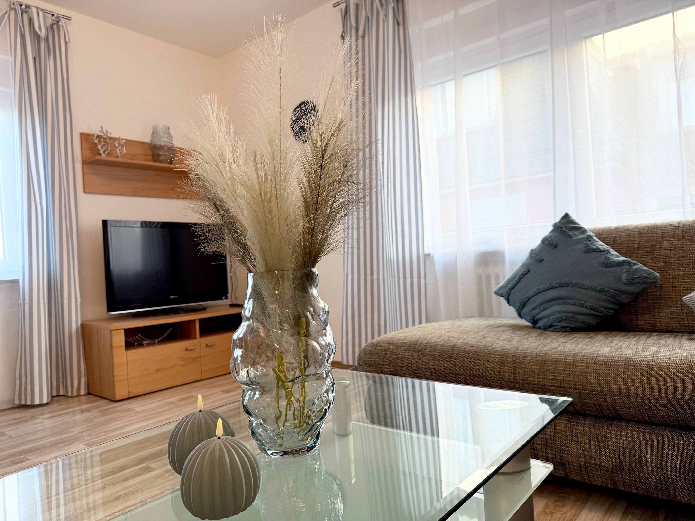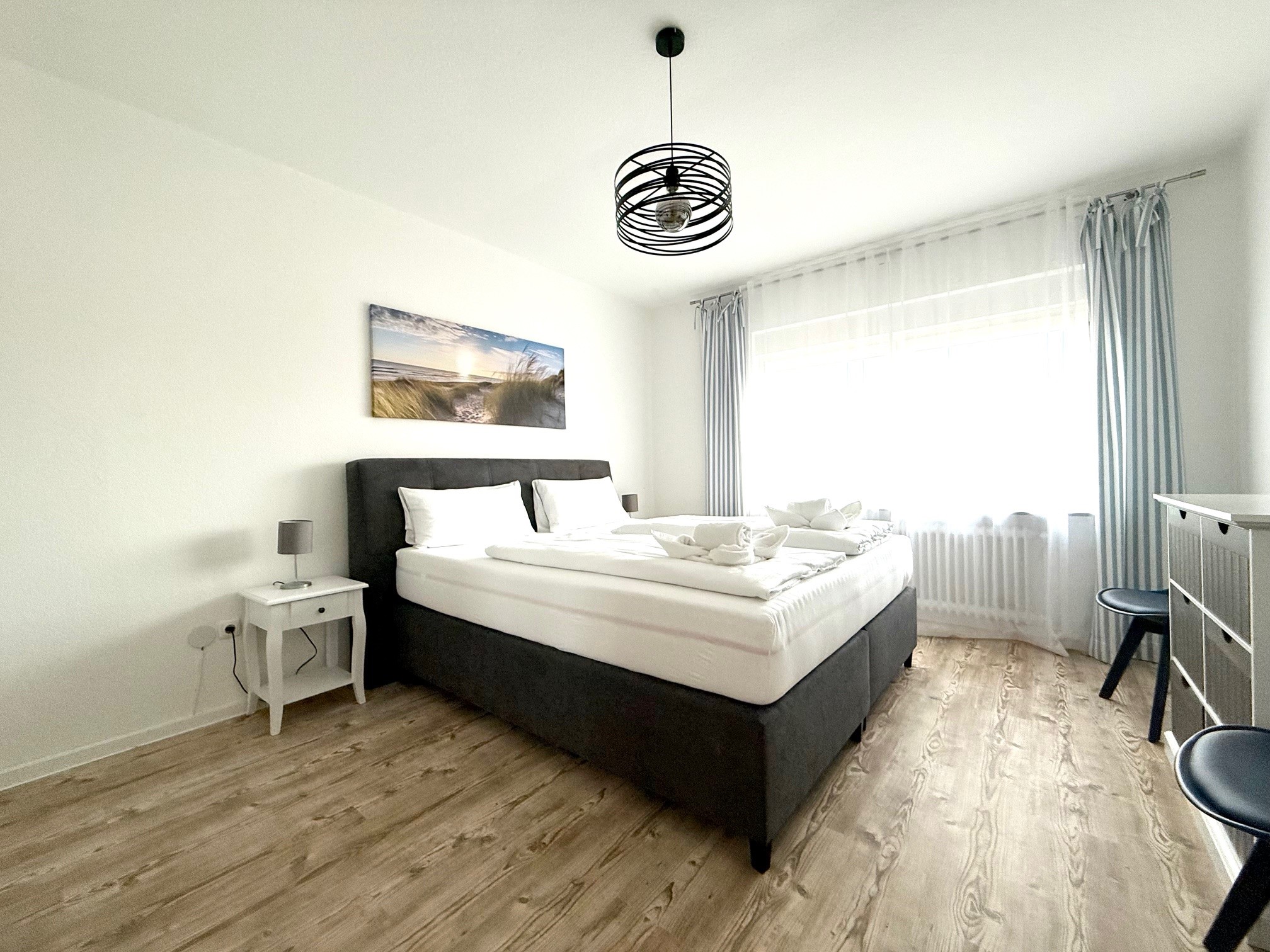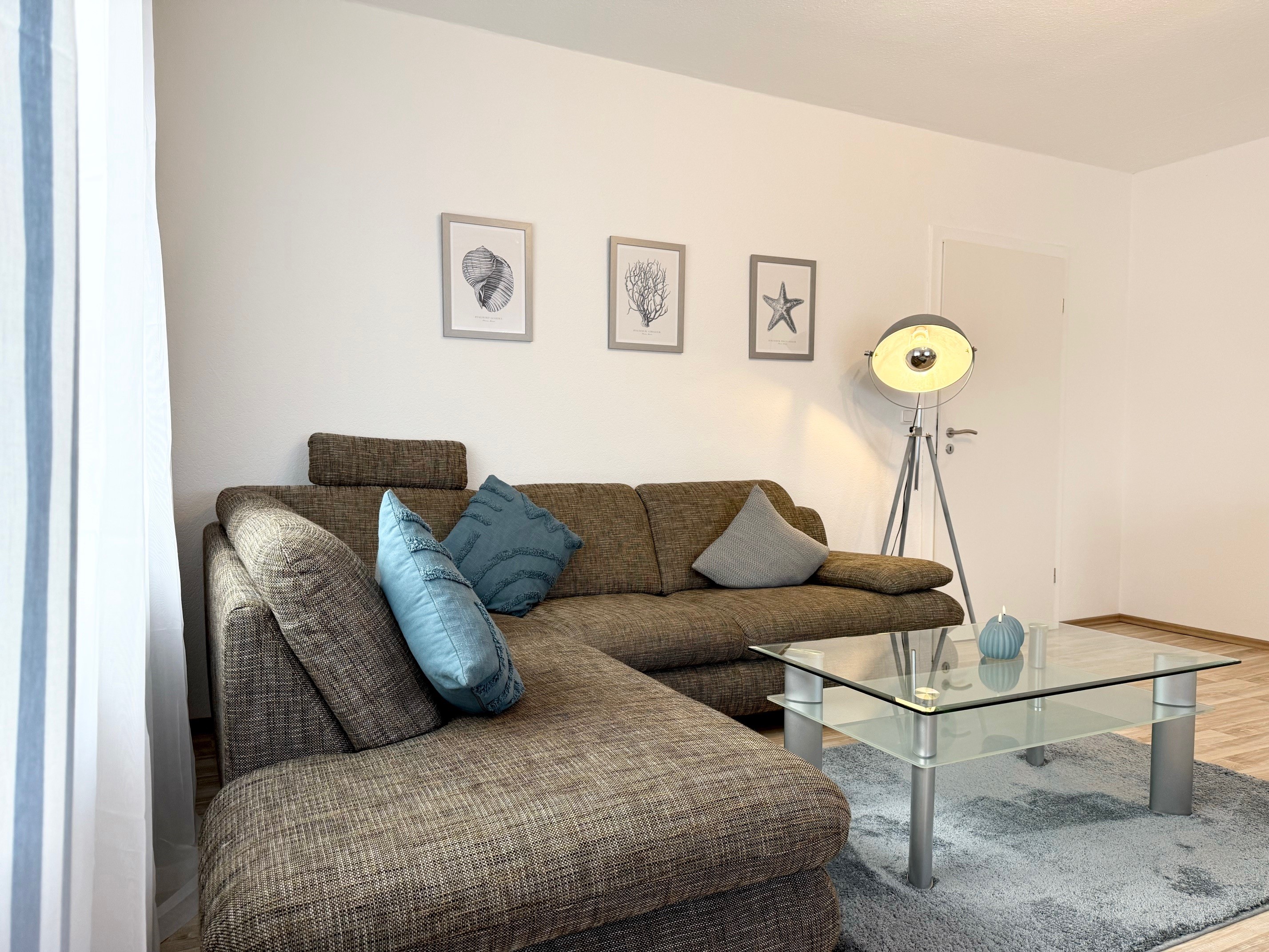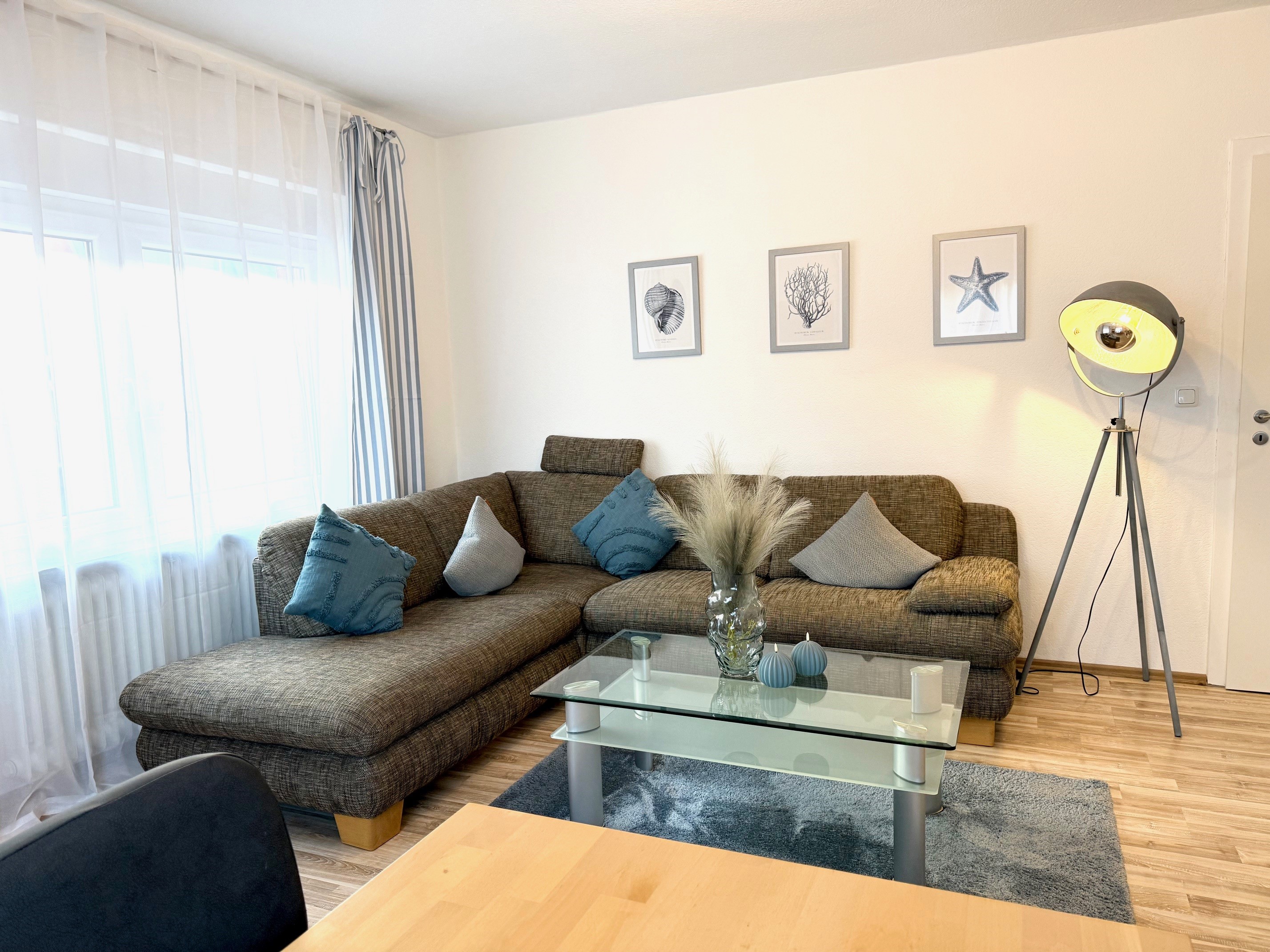 Diese charmant eingerichtete Ferienwohnung befindet sich im 1. Stock und eignet sich ideal für den Urlaub von bis zu vier Personen. Das geräumige Wohnzimmer verfügt über eine bequeme Couchgruppe, einen separaten Essplatz und eine komplett ausgestattete Küchenzeile. Die Küchenzeile ist ausgestattet mit einem Ceranfeld, Backofen, Kühlschrank, Toaster, Wasserkocher sowie einer Mikrowolle. Es sind 2 separate Schlafzimmer vorhanden, eins mit Doppelbett und eins mit zwei Einzelbetten). Die Wohnung ist abdunkelbar durch Außenjalousien. Zu diesem Haus gehört ein 2000qm großer Garten, welcher frei zur Verfügung steht und die Möglichkeit für gemütliche Grillabende oder Sonnenstunden im Freien bietet. Die angegebenen Preise gelten pro Ferienwohnung und Übernachtung. Wäschepaket (Bettwäsche und Handtücher) zu buchbar.