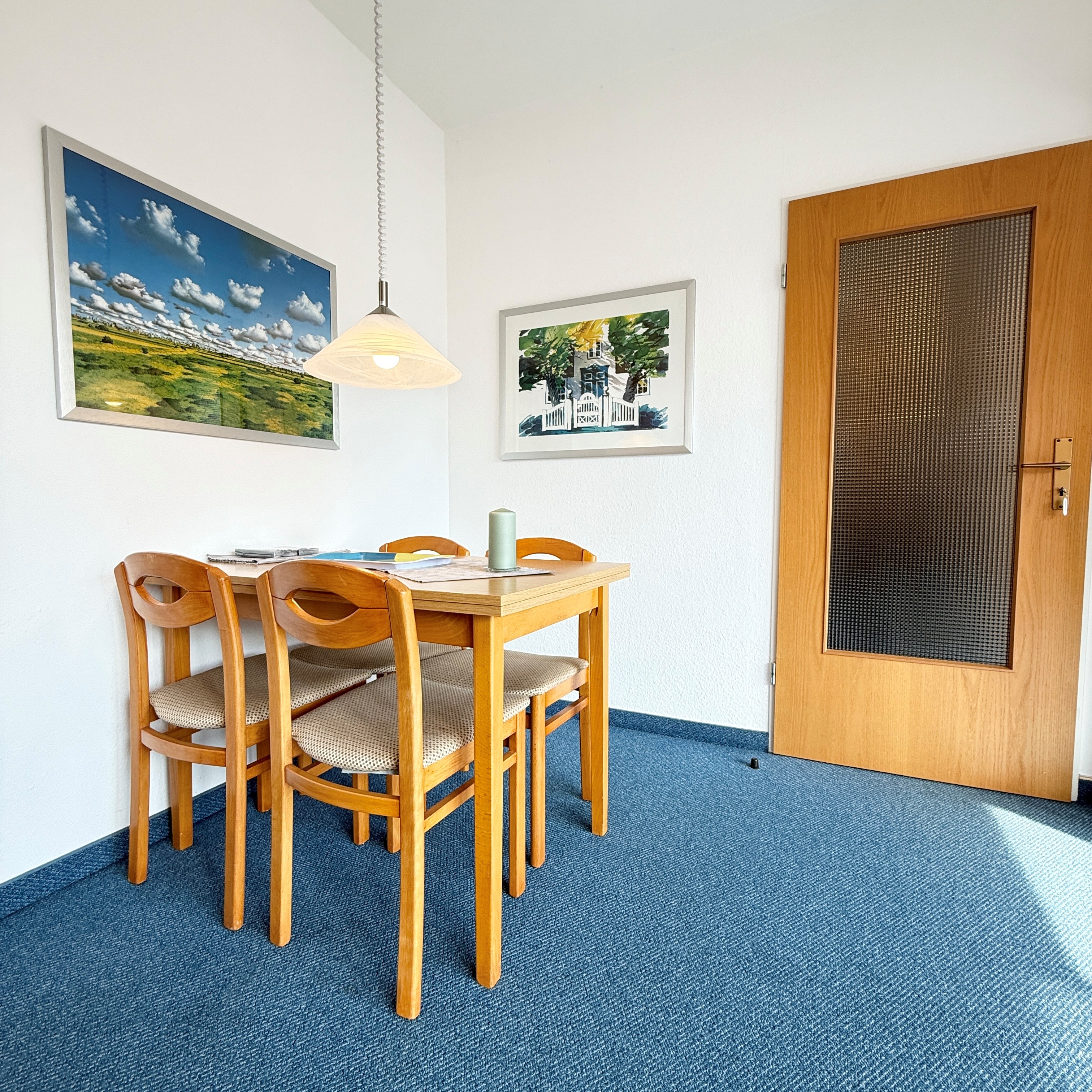 Gemütliche Ferienwohnung in ruhiger Lage von Cuxhaven-Duhnen Die gepflegte Ferienwohnung Voßhörn 3 – Wohnung 02 befindet sich in einer verkehrsberuhigten Straße im beliebten Kurteil Duhnen – einer der schönsten Lagen in Cuxhaven. Der herrliche Sandstrand am Deich sowie das Erlebnisbad „Ahoi“ mit Thalassozentrum sind nur etwa 3 Gehminuten entfernt und machen diese Unterkunft zu einem idealen Ausgangspunkt für Ihren Nordseeurlaub. Die Wohnung bietet ein helles, liebevoll eingerichtetes Wohnzimmer mit gemütlicher Couch, Sessel, Essecke und Flachbild-TV. Das separate Schlafzimmer ist mit zwei Einzelbetten ausgestattet und sorgt für erholsame Nächte. Die separate Küche verfügt über ein Ceranfeld, eine Mikrowelle sowie alle wichtigen Küchenutensilien, während das Badezimmer mit Dusche und WC funktional und gepflegt ist. Für entspannte Stunden im Freien steht Ihnen eine private Terrasse zur Verfügung. Ein Pkw-Stellplatz direkt am Haus rundet das komfortable Angebot ab. Optional können Sie ein Wäschepaket mit Bettwäsche und Handtüchern dazubuchen.